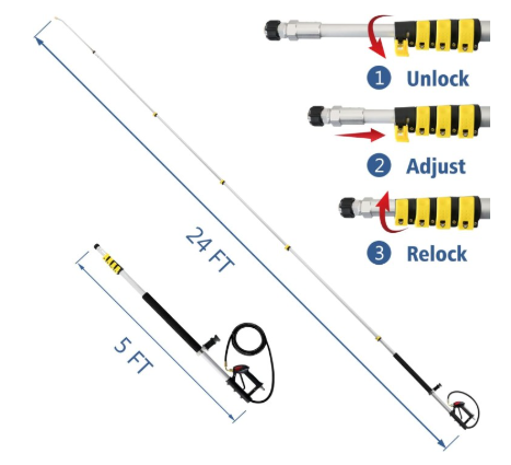 Телескопический алюминиевый удлинитель для мойки высокого давления 7,32 м давление до 275 бар