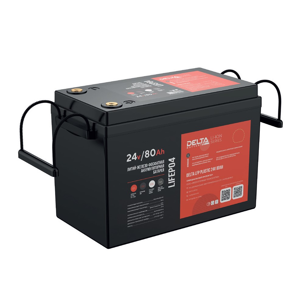 DELTA LFP PLASTIC - Универсальные литий-ионные аккумуляторные батареи (АКБ) в пластиковом корпусе серии DELTA Li-Ion Series, имеющие химическую формулу LiFePO4. Батареи имеют систему контроля и управлеyия зарядом (BMS), осуществляющую постоянный контроль и балансировку литий-ионных ячеек батареи, обеспечивающую отключение батареи согласно встроенным защитам: если происходит перезаряд, глубокий разряд, перегрузка по току или короткое замыкание внутри батареи.