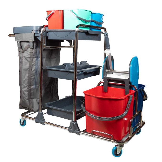 Многофункциональная двух-ведерная (2х25л) тележка KA915YK от турецкого производителя Uctem Plas предназначена для профессиональной влажной уборки в помещениях: бизнес-центры, офисы, склады, гостиницы, супермаркеты и т.д.