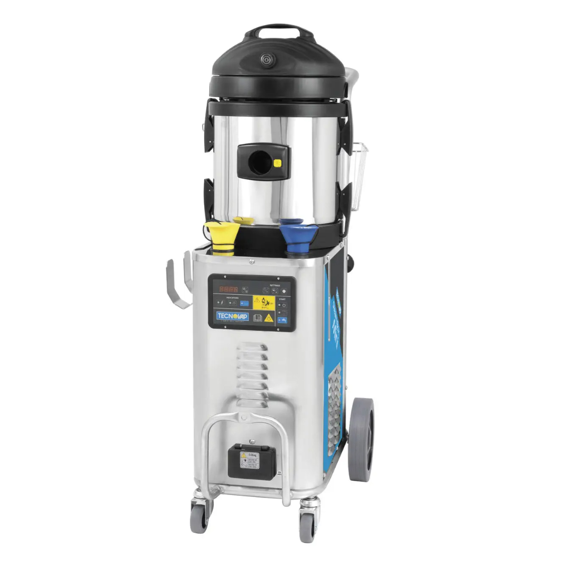 Пароочиститель Tecnovap Steam Box Vac Mini с корпусом из нержавеющей стали предназначен для профессионального использования, способный подавать сухой насыщенный пар при 174°C.