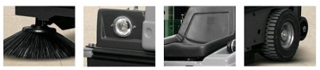 Модель Comet CSW 1200 G-DSA подходит для для уборки средних и больших поверхностей. Эргономическое сиденье и высокая производительность позволяют убирать большие площади за меньшее время, не утомляя оператора. Большой объем отсека для мусора обеспечивает повышенную автономность, значительно сокращая время работы. Подметальная машина CSW1200 G-DSA имеет электропривод опустошения бака, поэтому оператору не придется тратить время на опустошение мусоросборника вручную. Оснащена двумя типами щёток: центральной цилиндрической, которая вращается параллельно полу в противоположную сторону по направлению движения машины и собирает мусор в мусоросборник, и двумя боковыми дисковыми щётками, расположенной под углом к поверхности и идеально заметающей грязь вдоль бордюров и под выступами,по желанию одну щетку можно снять. Система всасывания расположена в рабочей зоне центральной щётки и вместе с её механическим действием собирает пыль и грязь в мусоросборник, пропуская мусор через панельный фильтр.