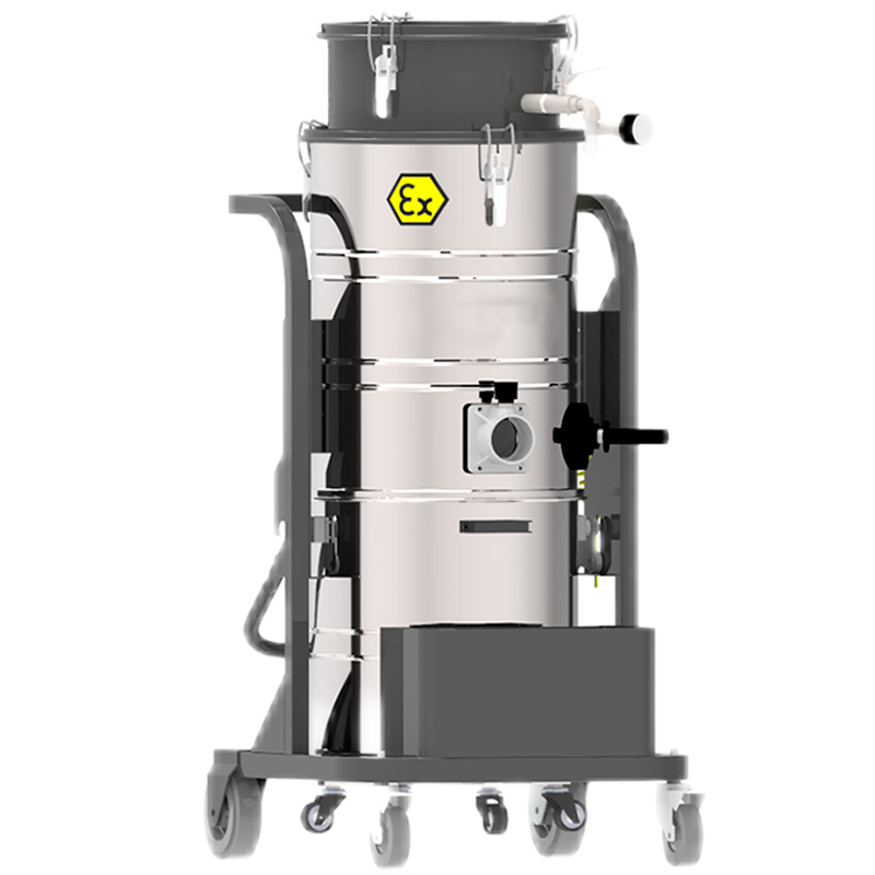 VOSTOK PYWEX-DW — пневматический промышленный пылесос из категории взрывозащищенных, предназначенный для работы во взрывоопасных пылевых зонах Z21 и Z22. Модель сертифицирована по директиве ATEX и использует вакуумный блок на основе системы Вентури с приводом от сжатого воздуха, что полностью исключает необходимость электропитания. Пылесос рассчитан на сбор опасной и мелкодисперсной пыли в условиях повышенных требований к промышленной безопасности. Конструкция из нержавеющей стали и многоступенчатая система фильтрации обеспечивают надёжную и стабильную эксплуатацию на предприятиях с взрывоопасной средой.