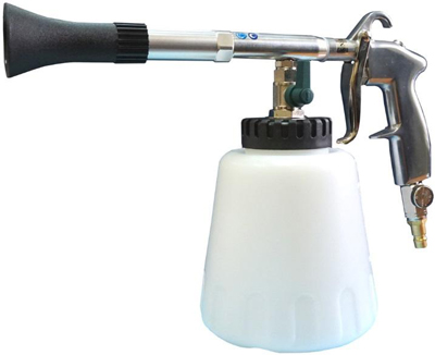 Распылитель типа ЦИКЛОН для профессиональной очистки поверхностей при помощи сжатого воздуха. Оснащен металлической трубкой малого диаметра, установленной на высокоскоростной подшипник производства Японии и вращающейся посредством сжатого воздуха. Моющая жидкость распыляется под давлением и с высокой скоростью, что позволяет быстро и эффективно удалять различные загрязнения с поверхности ткани, велюра, винила, пластика и т.д. Обладает высокой степенью износоустойчивости и эффективностью производимых работ по химчистке. Скорость вращения рабочего элемента значительно выше, чем у моделей, неоснащенных подшипником. Идеально подходит для автомоек и автосервисов при проведении работ по химчистке обивки салона, пластика и потолка автомобиля. Оснащен регулятором расхода химии.