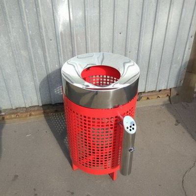 :Классическая напольная урна, сочетающая в себе функции пепельницы и мусорной корзины. Конструкция выполнена из окрашенной стали с полимерным покрытием и подходит для размещения как внутри помещения, так и на улице. Верхняя крышка с отверстием для окурков легко снимается, под ней размещен алюминиевый контейнер для предотвращения попадания горящих окурков внутрь урны. Боковое окно позволяет бросать более крупный мусор. Поставляется в картонной таре, покрыта защитной полиэтиленовой пленкой.