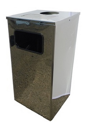 Мобильная урна серии "Уника.Квадро" . Бак выполнен из зеркальной нержавеющей стали. Внутри бака находиться рамка-держатель для пакета. Крышка снабжена емкостью для окурков, а также сетчатым сигаретогасителем.