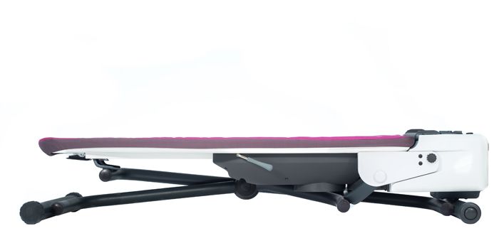 Вопросы хранения и транспортировки гладильной системы продуманы до мелочей! После работы гладильная доска легко складывается (в сложенном виде ее высота 132 см, а ширина – всего 29 см) и перемещается к месту хранения помощью двух прорезиненных колесиков.
