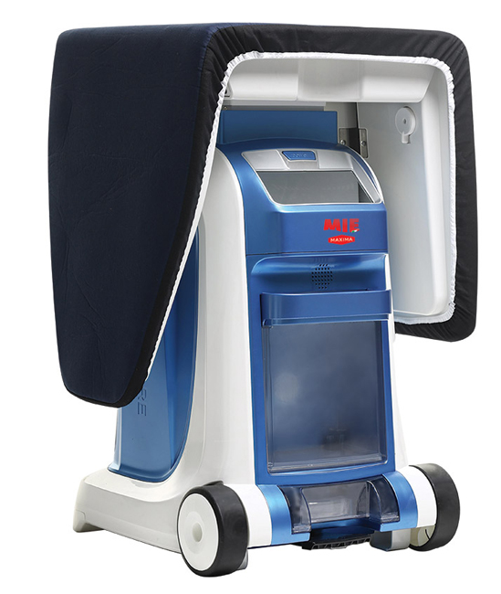 - Несмотря на то, что MIE Maxima состоит из трех приборов, она компактна и мобильна. Гладильная система имеет запатентованную складную конструкцию. В сложенном варианте устройство приобретает вид передвижного столика на колесиках. То есть систему легко перемещать из комнаты в комнату и удобно хранить.