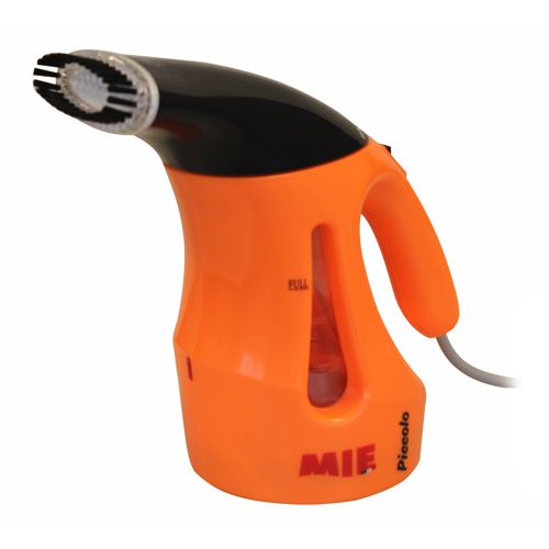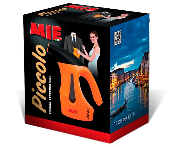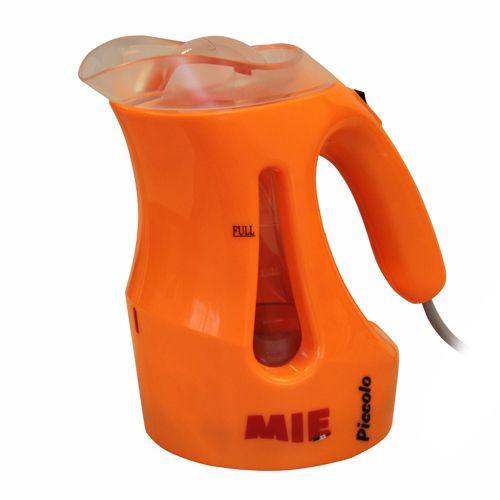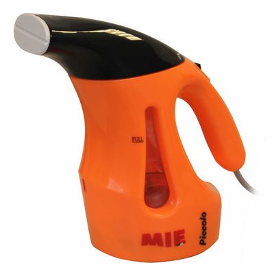 Маленький и многофункциональный, простой и удобный в использовании – это новый MIE PICCOLO! В первую очередь он привлекает внимание своим ярким дизайном, красивым исполнением корпуса и компактностью. Сочетание оранжевого и черного цветов - это стиль MIE. Удобная ручка с кнопкой включения, вытянутый «носик» с паровым утюжком, прозрачное «окошко», в котором виден уровень воды.