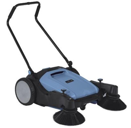 HYS105 - ручная машина для подметания, механизм которой приводится в движение толканием. Вращающееся колесо двигает ремень, ремень вращает щетку валика и боковые щетки, которые подметают поверхность и собирают мусор в емкость для мусора.