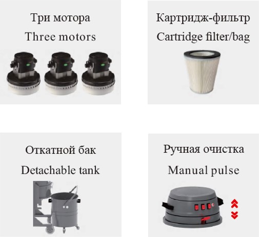 Однофазный трехтурбинный промышленный пылесос VOSTOK PDW идеально подходит для уборки производственных и складских помещений. Благодаря своей компактности и удобству, его легко перемещать. Этот пылесос предназначен для сбора мелкой бетонной пыли, жидкости и металлической стружки. Три мощные турбины обеспечивают продолжительную работу, а фильтр площадью 40 000 см² в сочетании с полуавтоматической системой очистки позволяет работать без пылесборников. - Внутри корпуса фильтровальной камеры размещен главный конический фильтр с площадью фильтрующей поверхности 40 000 см²
